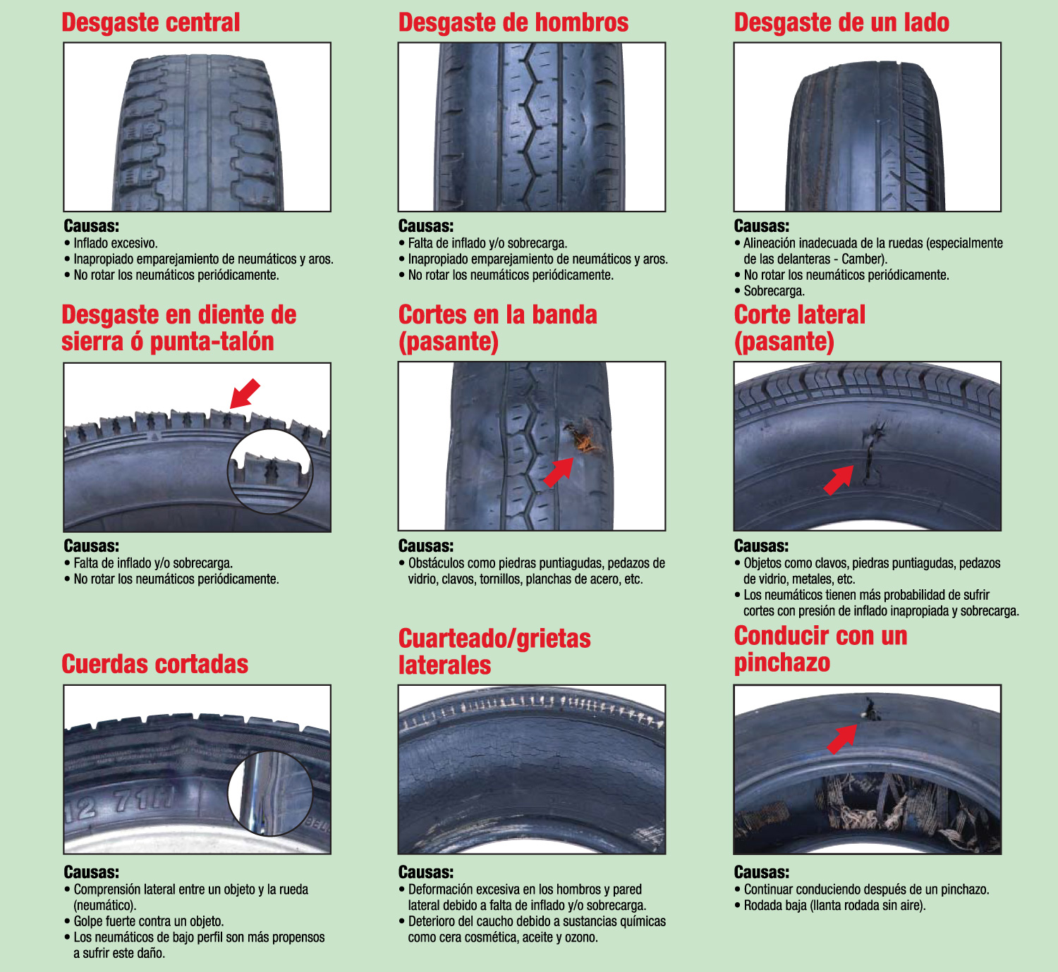 Te dejamos algunos de los daños típicos de los neumáticos para que puedas recinocerlos a simple vista y evitarlos de ser posible para que tus neumáticos te puedan durar más.