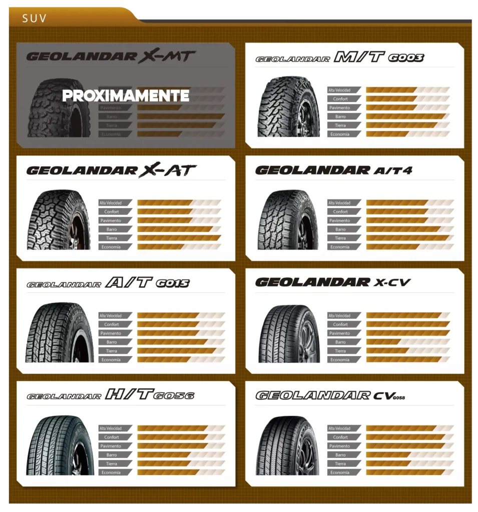 La marca japonesa de llantas Yokohama cuenta con una completa gama de neumáticos para auto, camioneta, SUV, camión, bus y aplicaciones industriales y mineras. Cuenta con más de 100 años de experiencia y se ubica entre las 10 mejores marcas de llantas del mundo. Adicionalmente, participa en diversas competencias motorsport logrando excelentes resultados y aprovecha estas competencias para el desarrollo y prueba de nuevos compuestos y tecnologías que le permiten mejorar la calidad, durabilidad y rendimiento de sus neumáticos, pensando siempre en el bienestar de sus clientes.